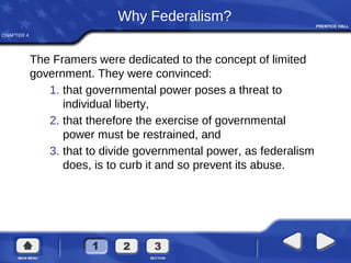 32 What is federalism How is the US government an example of a federal system. Which of the following statements best describes Rikers view of federalism in the United States. Government by solving the problem of federalism.